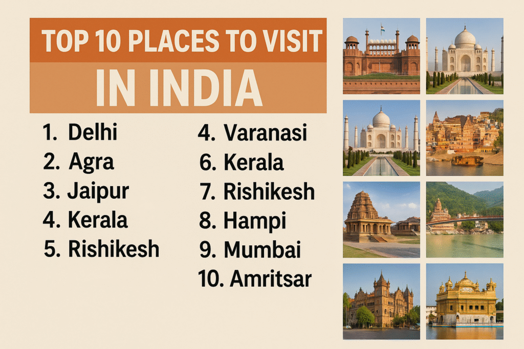 When you plan your trip, remember that India is vast, and each region has its own rhythm, flavors, and stories. So pack your bags, keep an open heart, and get ready to explore the Top 10 Places to Visit in India — each one promising experiences that will stay with you forever.